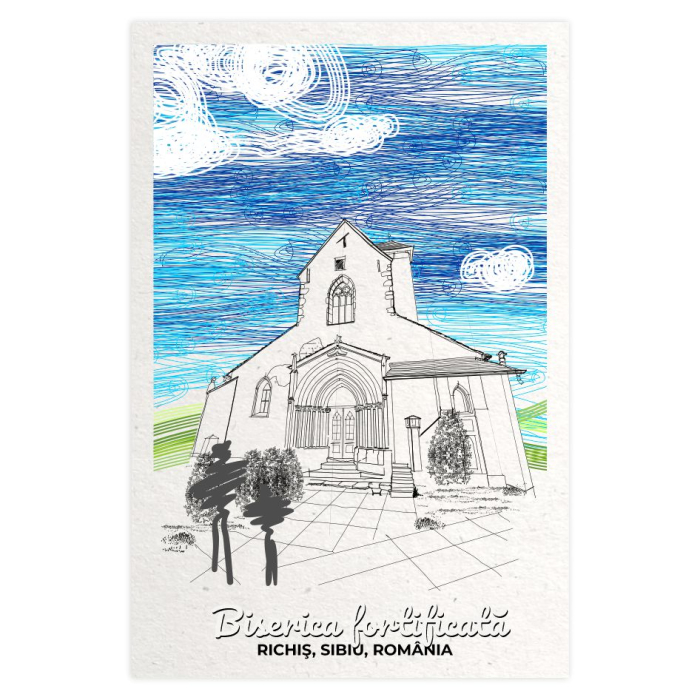 Carte postala cu ilustratie originala, tiparita pe carton reciclat.