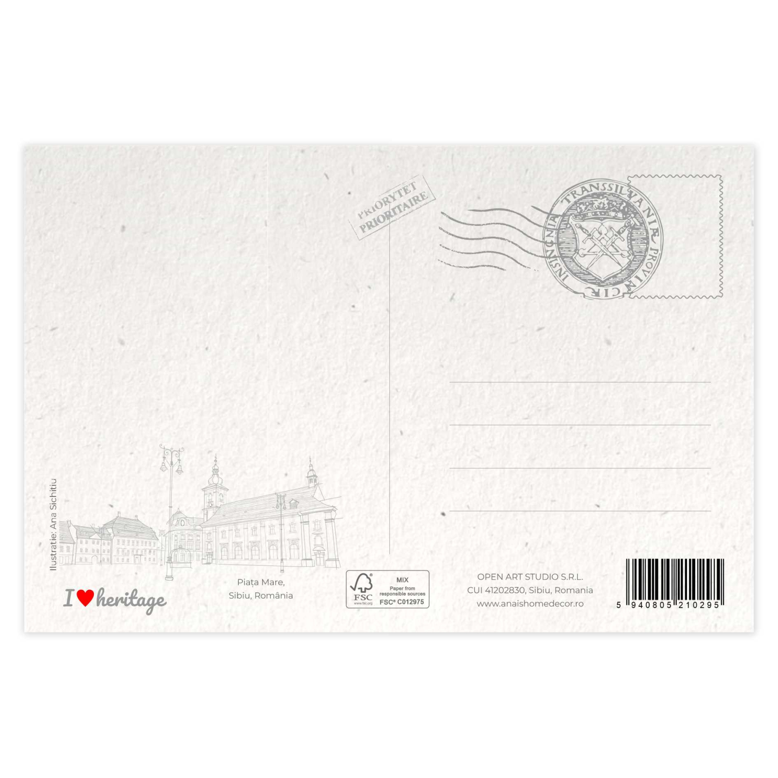 Carte poștală din colecția I ❤️ Heritage, dedicată promovării patrimoniului construit al României. Este realizată pe hârtie certificată FSC, provenită din surse responsabile, cu un conținut de 30% reciclat pentru un impact mai mic asupra mediului.
