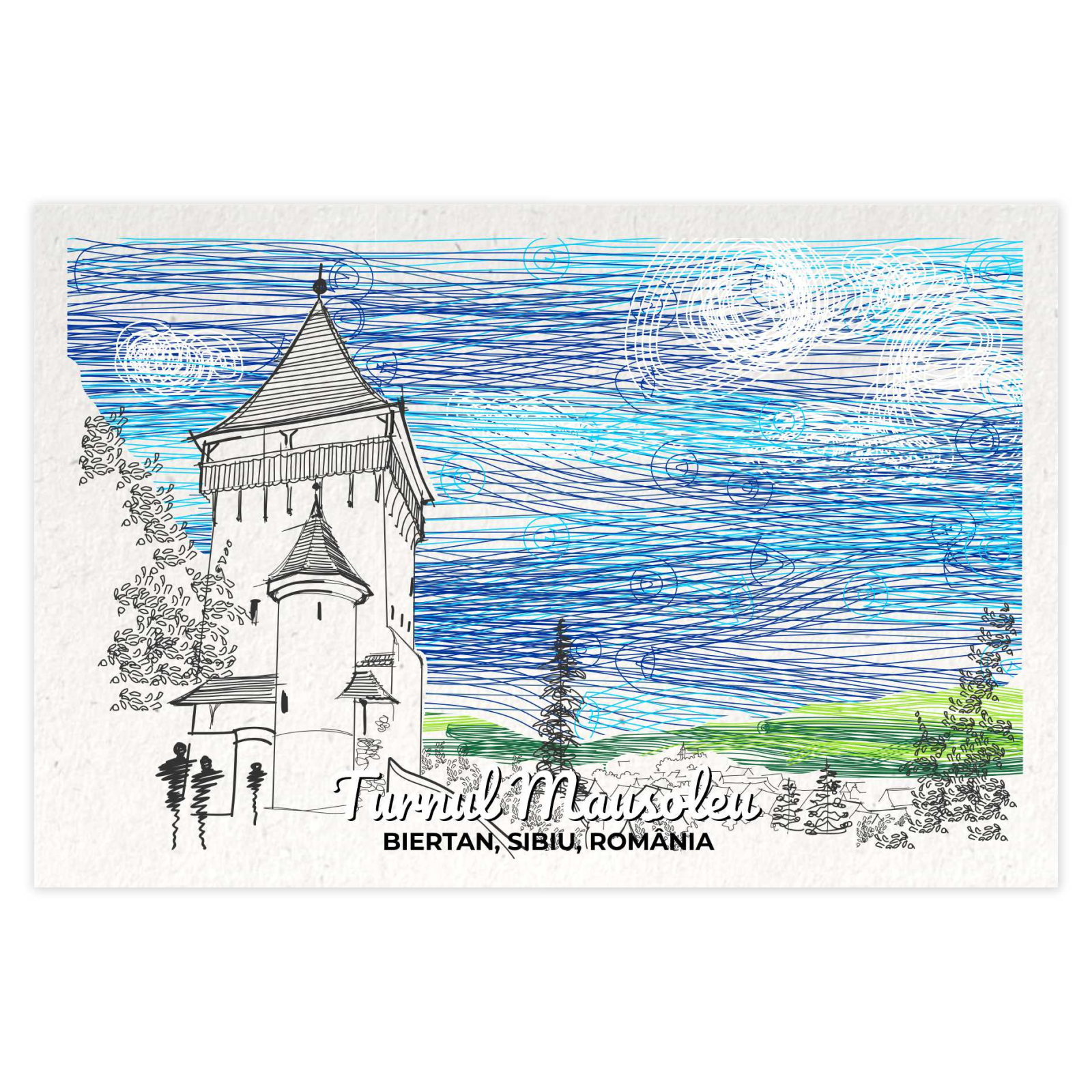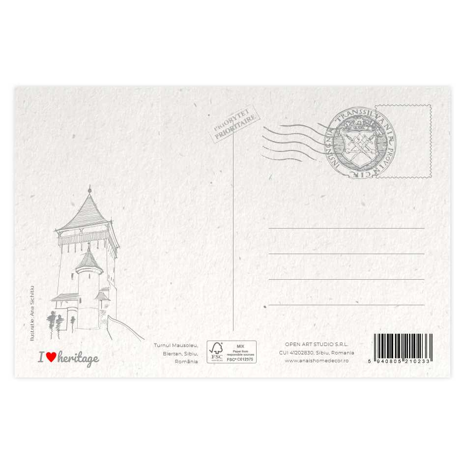 Carte postala cu ilustratie originala, tiparita pe carton reciclat.