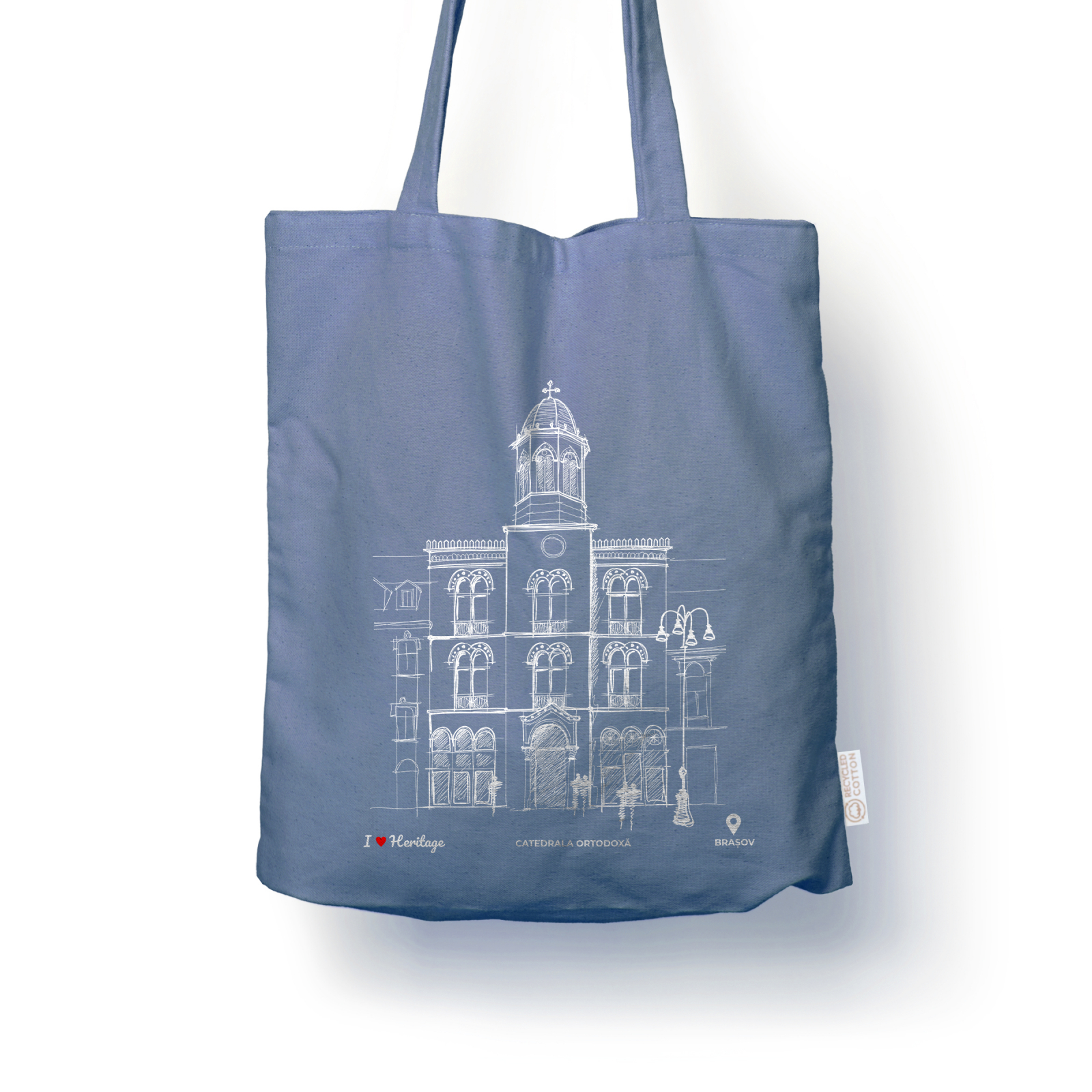 Această sacoșă face parte din colecția I ❤️ Heritage ce promovează patrimoniul construit al României. Folosim material din  bumbac reciclat si imprimeu rezistent la uzură – pentru un impact mai mic asupra mediului și bucuria de a o purta de nenumărate ori!